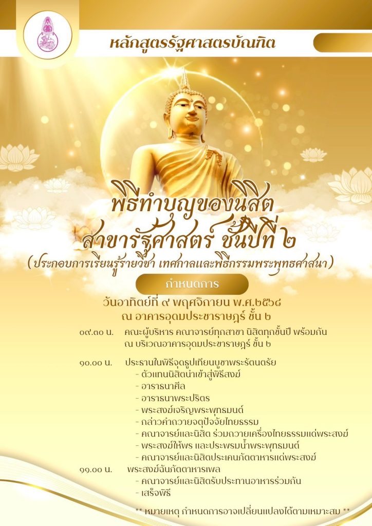 นิสิตสาขารัฐศาสตร์ชั้นปีที่ 2 จัดกิจกรรมทำบุญ